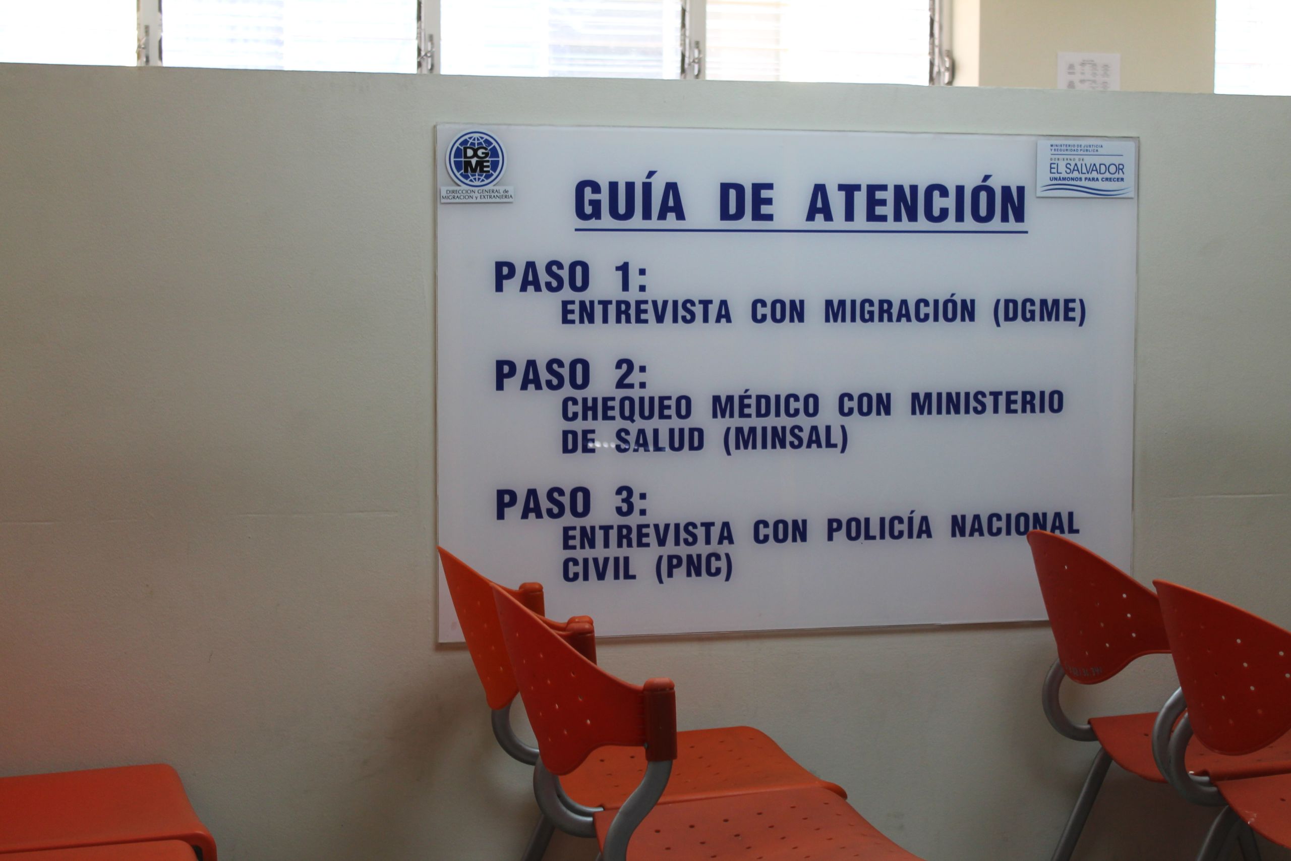 SAN SALVADOR, El Salvador — Bright orange plastic chairs sit empty in neat rows in the fluorescently lit waiting room.