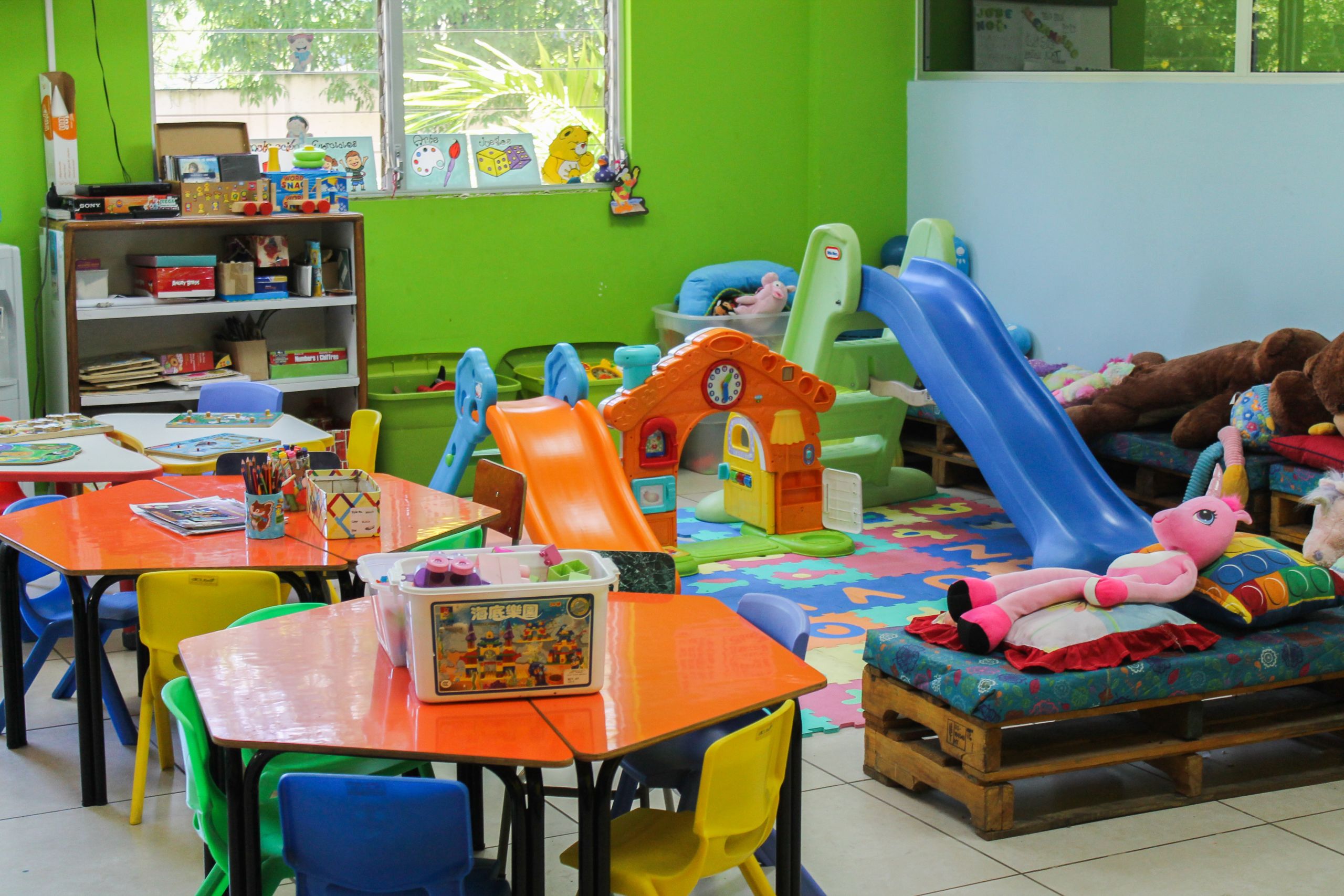 While parents are going through the intake process, children have free rein in a playroom that includes art supplies, toys, books, stuffed animals, and a slide. Child psychologists are available to assess needs, and staff wait with any unaccompanied children at the facility until a family member can pick them up. Only in rare cases are children kept in an emergency shelter overnight.