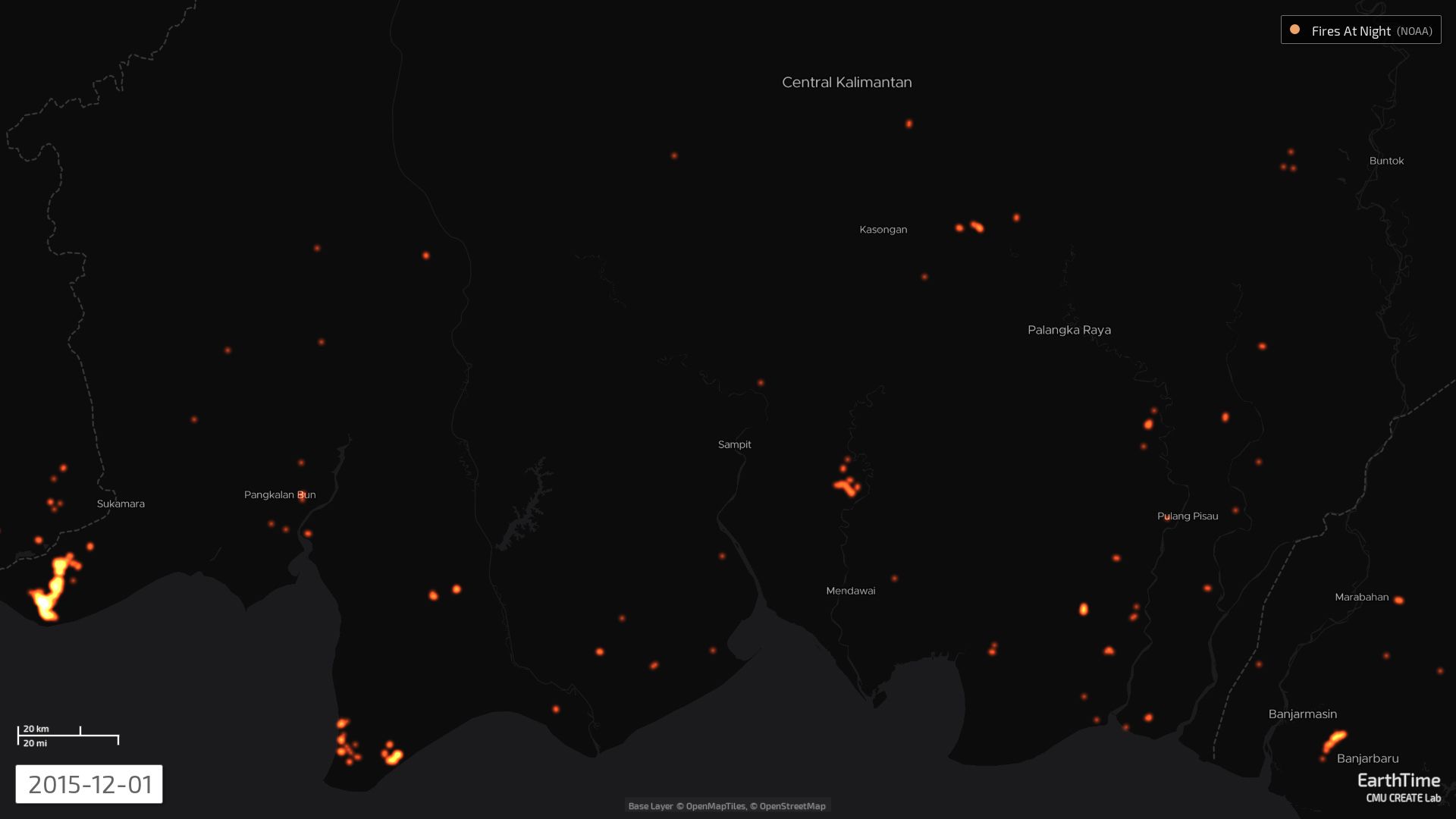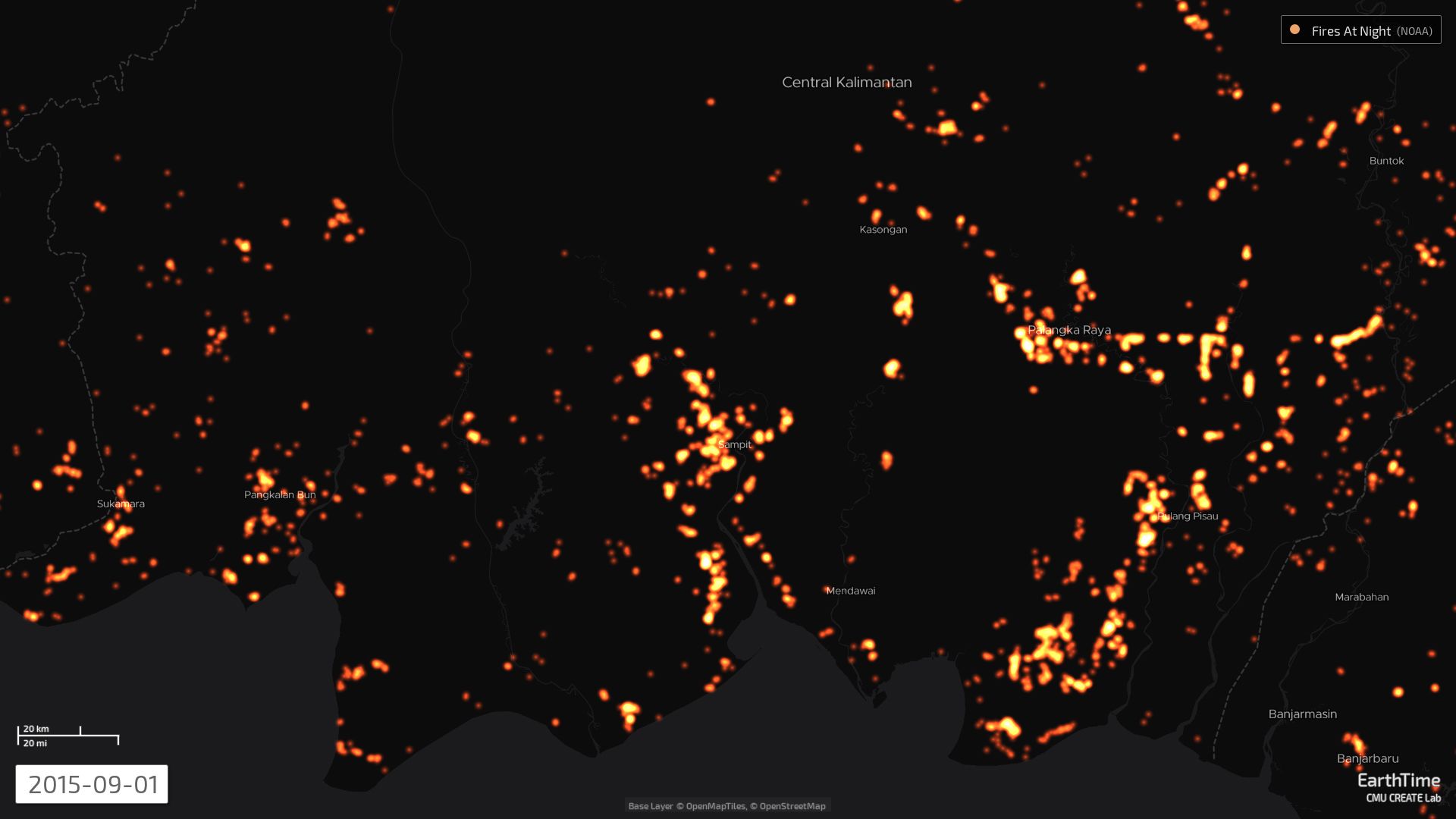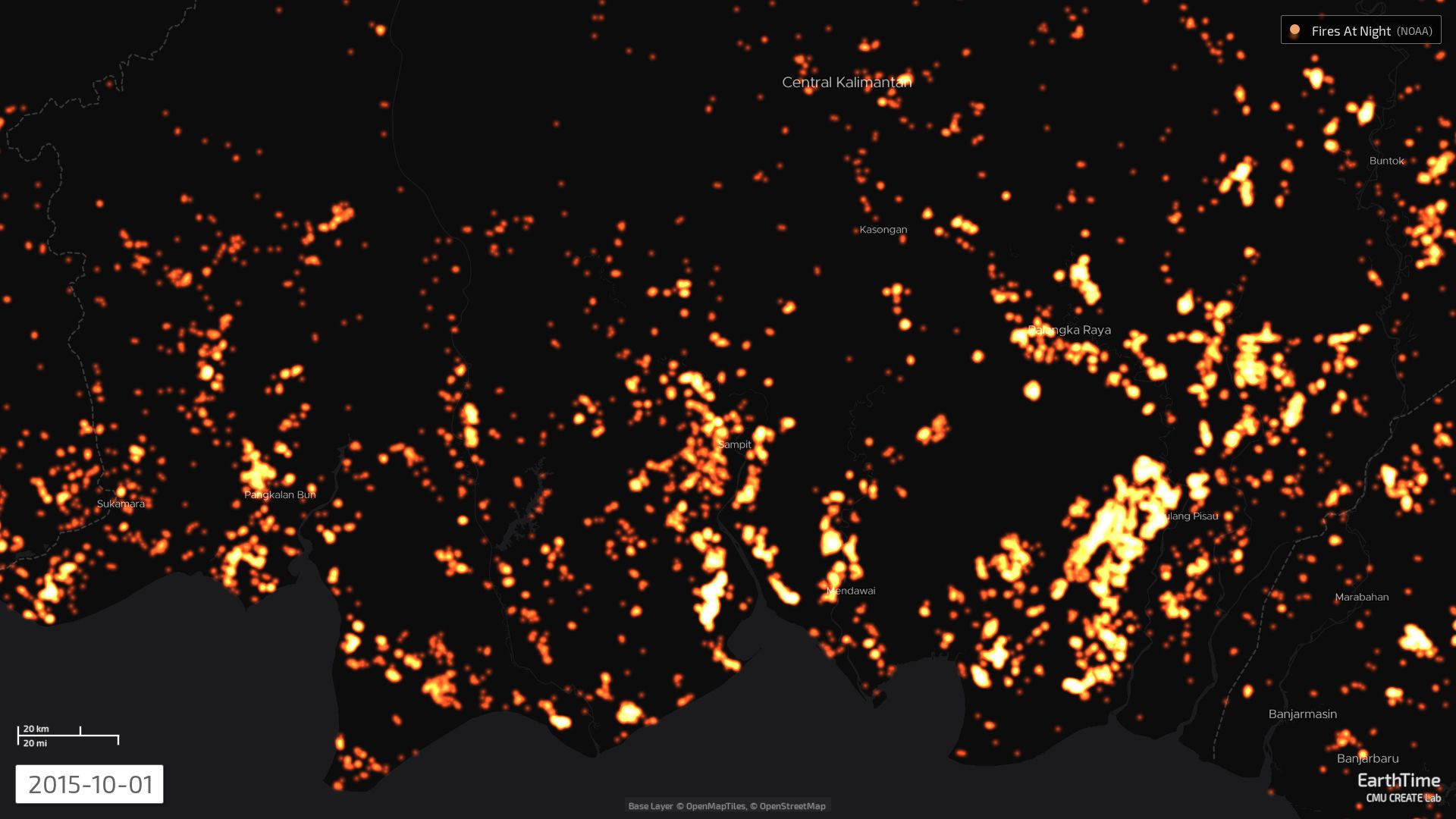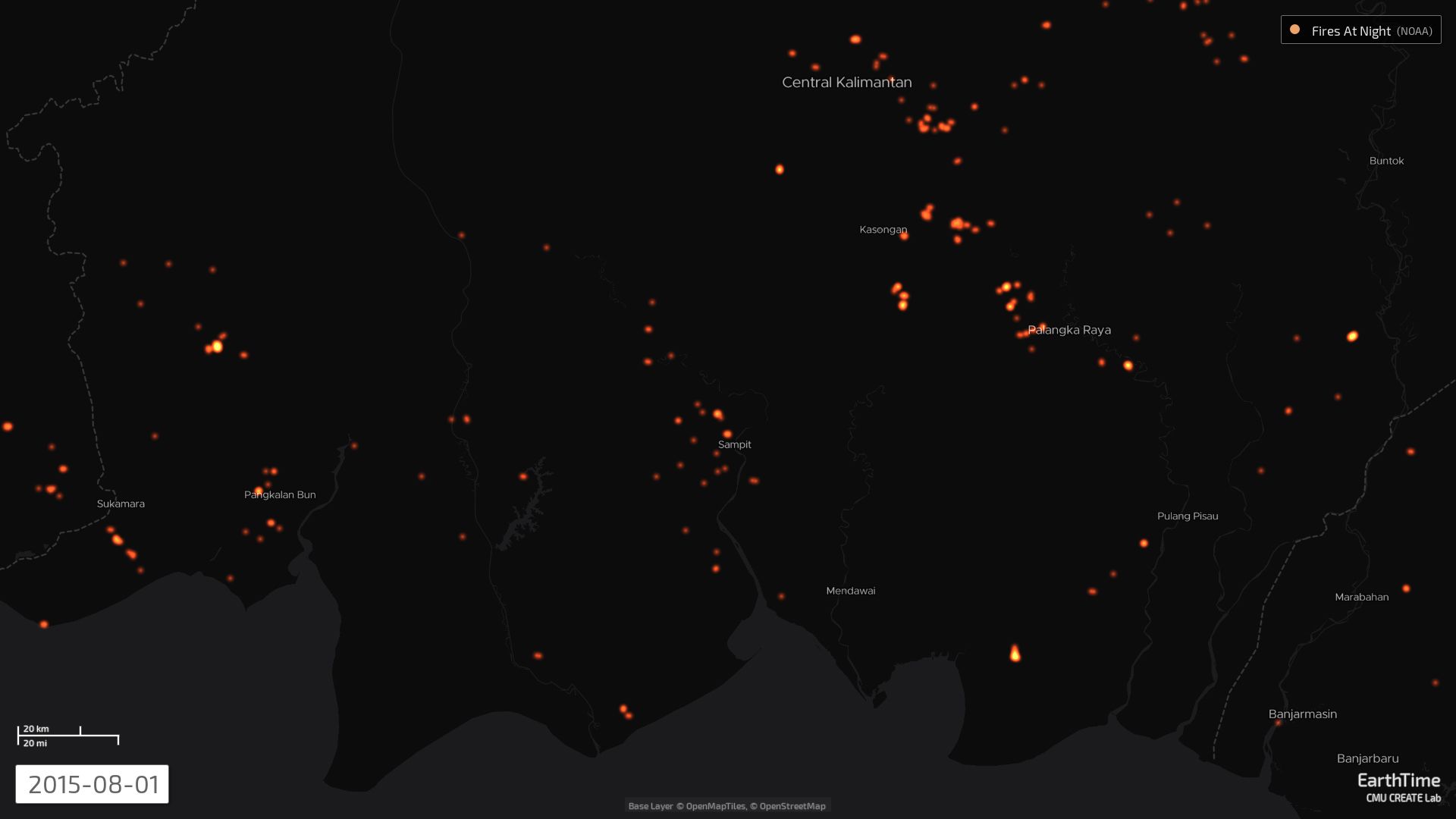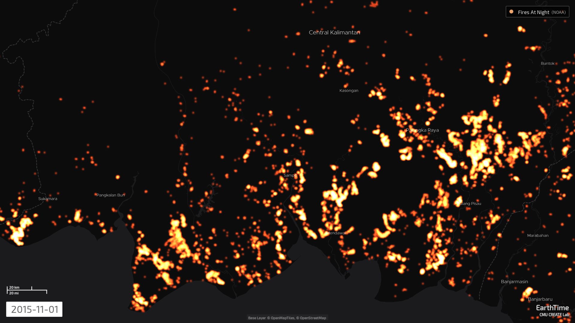 In 2015, more than 127,000 fires broke out across Indonesia, and satellite images taken at the time give the impression of an entire country up in flames. Zooming in closer to the peatlands of Central Kalimantan, a clear patch that conforms almost perfectly to the shape of the Katingan concession area emerges, with pulsing red and yellow flares lapping at its edges, but never penetrating into the forest zone.