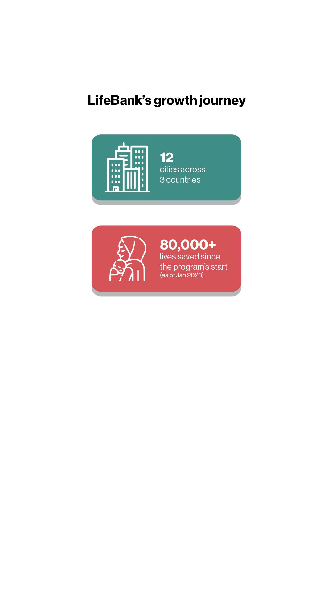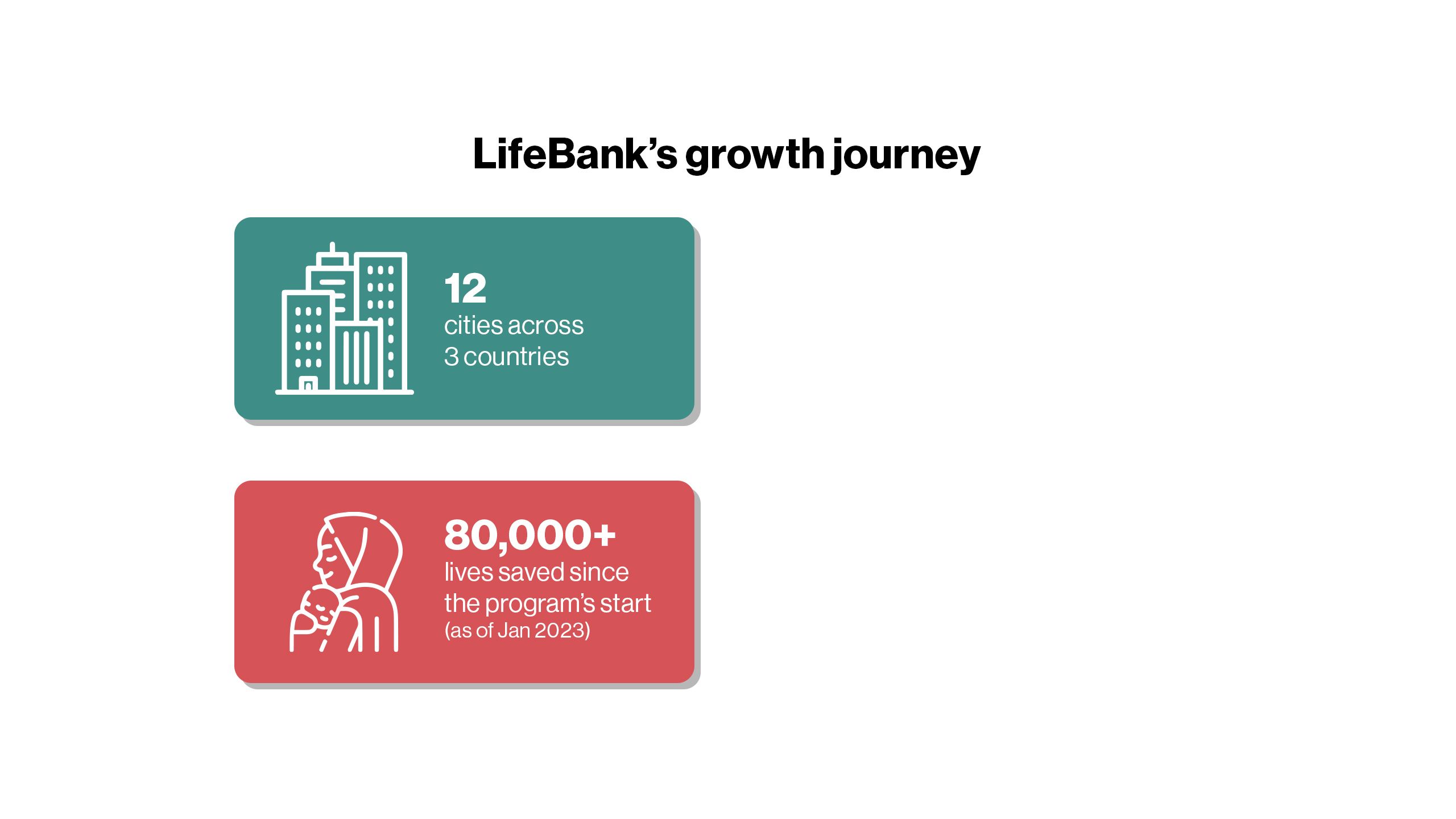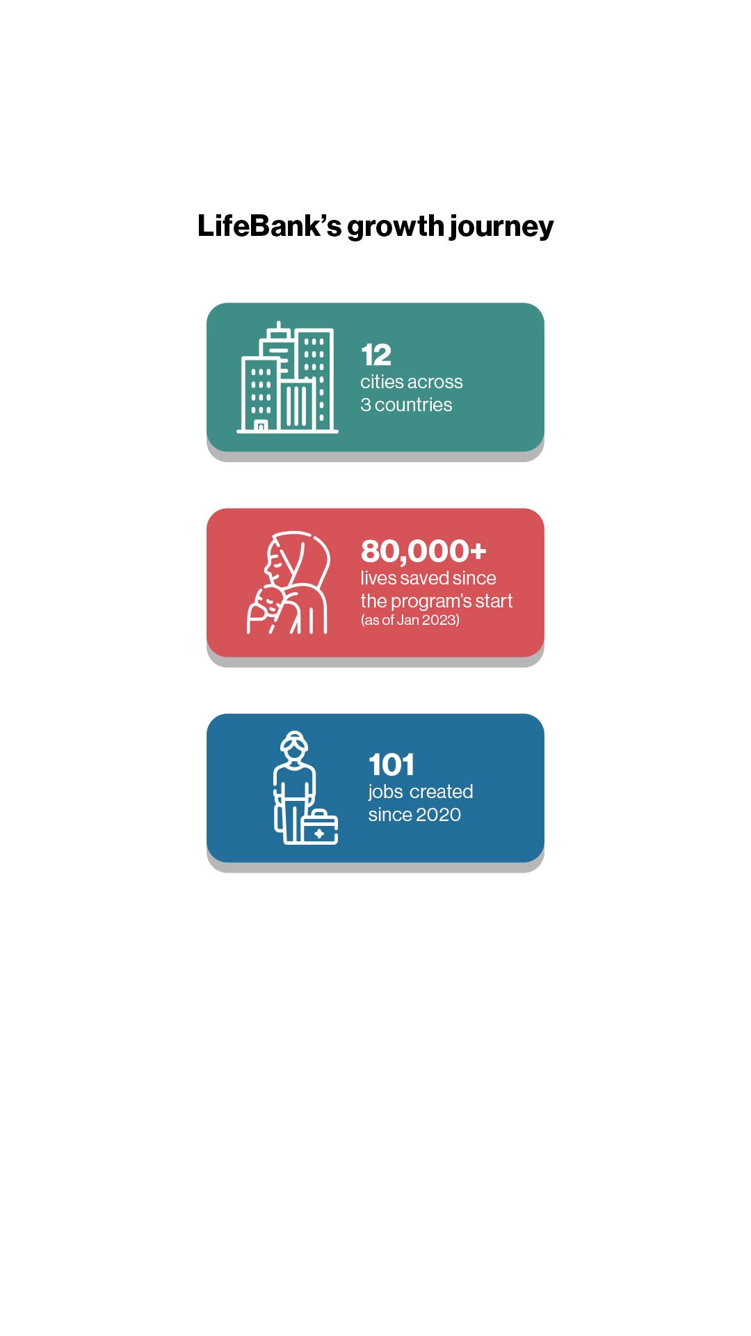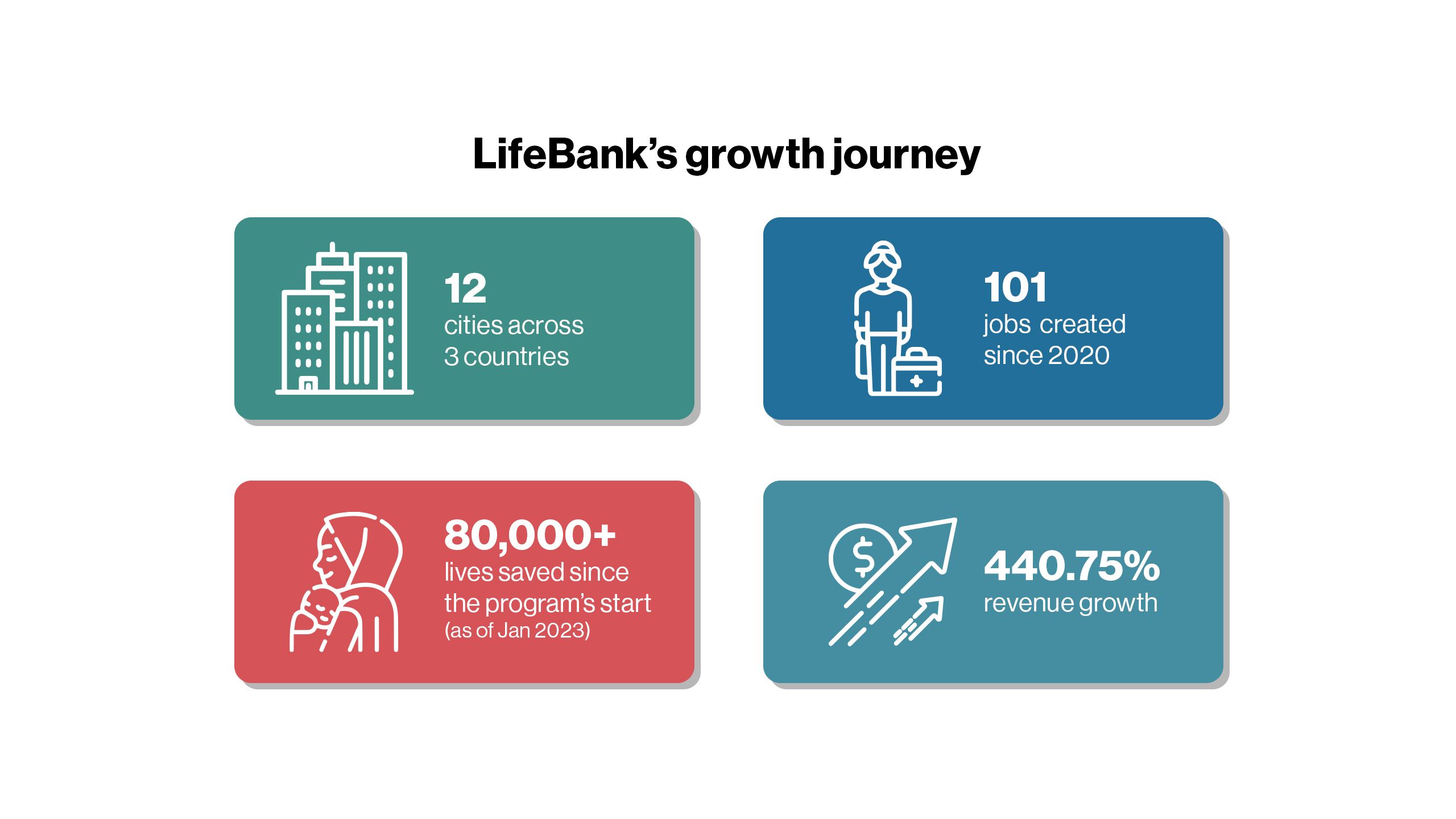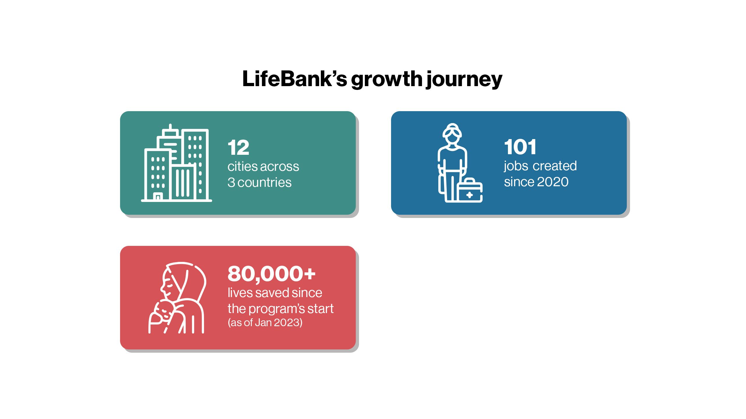 Today, LifeBank operates in 12 cities across three countries: Nigeria, Ethiopia, and Kenya. With its multimodal distribution network — which includes drones, tricycles, bikes, and trucks — they are able to deliver lifesaving medical supplies such as blood and oxygen in less than 45 minutes.