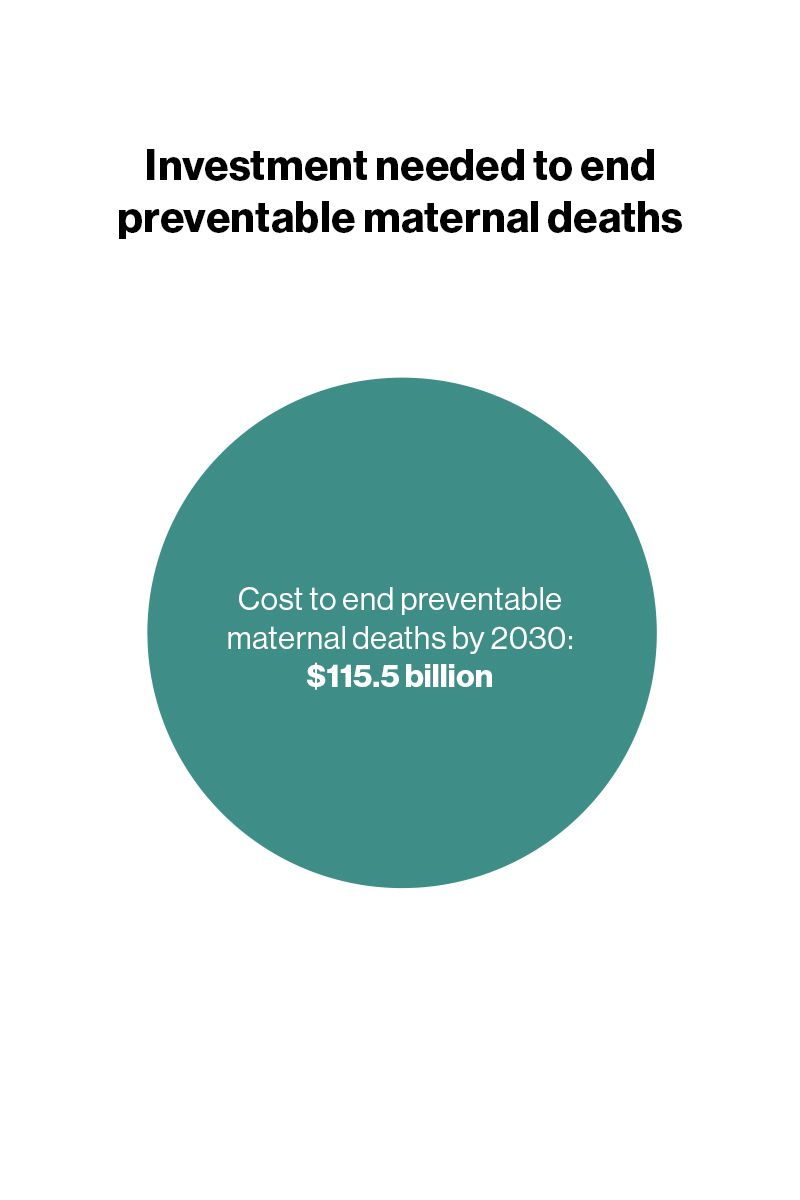 While the global development community has set the goal to reduce the rate of global maternal deaths by two-thirds by 2030, funding is not necessarily following suit. The cost to end preventable maternal deaths by 2030 is estimated at $115.5 billion. Yet, only $11.9 billion in development assistance is currently going to 120 priority countries over the next 10 years, leaving a $103.4 billion investment gap.