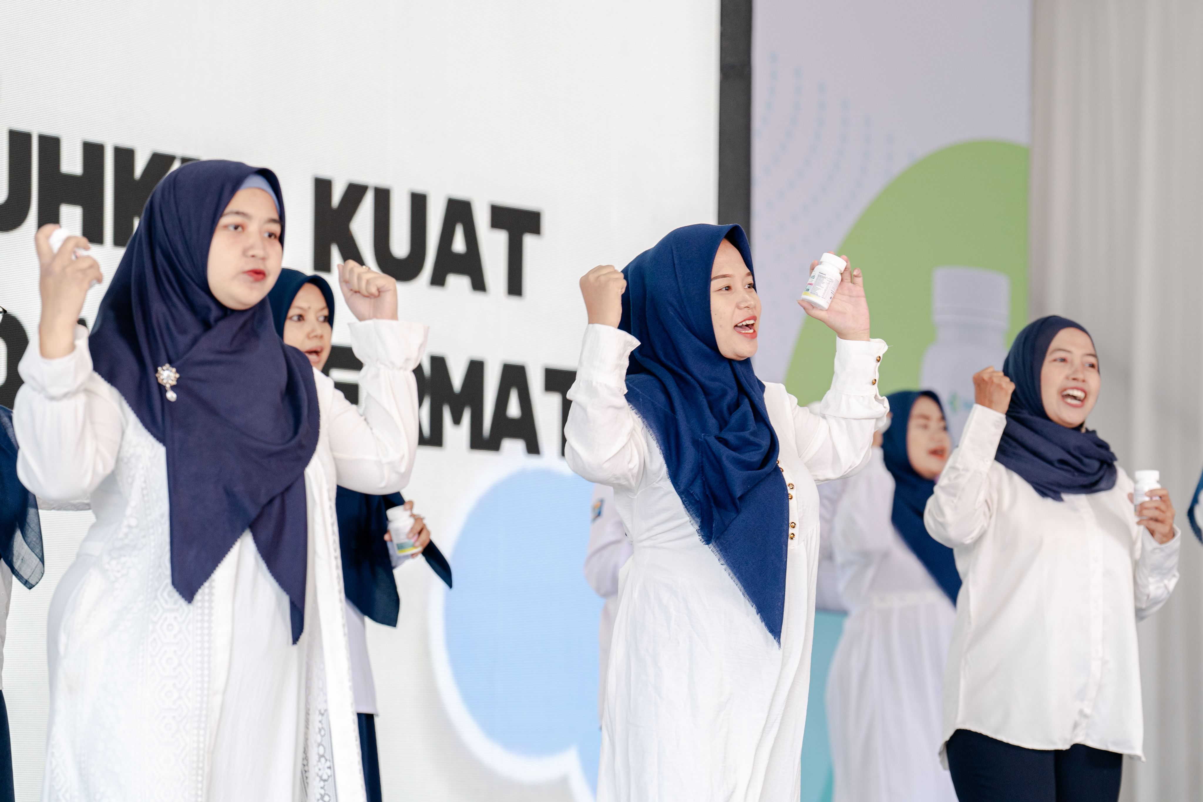 A group of pregnant women and Posyandu (the Integrated Service Post for Health) cadres perform the MMS song in the MMS National Program launch event. Photo: © Vitamin Angels / Zhu Qincay