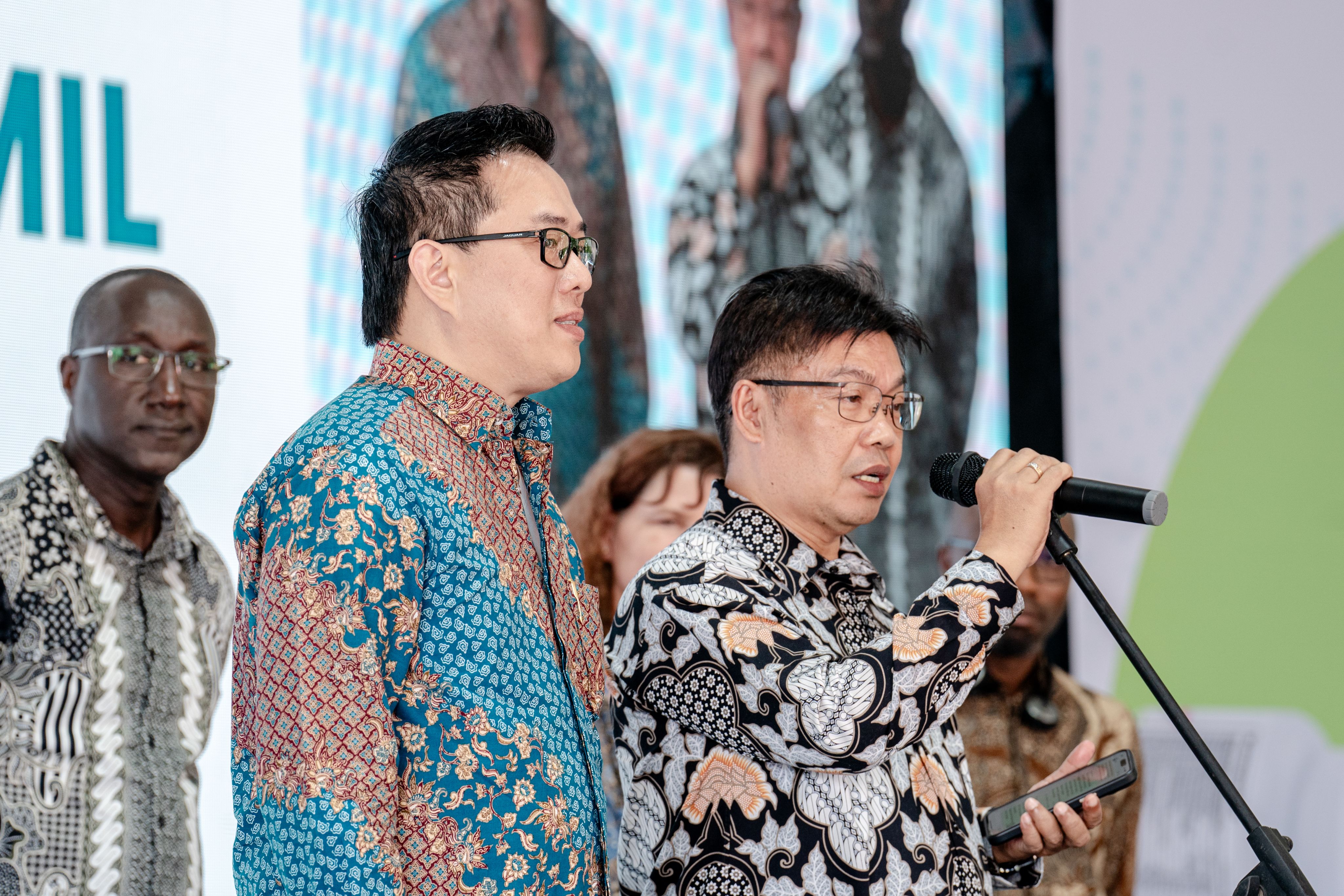 Decky Yao (left) and Eko Susanto (right) from the Association of Pharmaceutical Industries provide a joint commitment for local production of MMS multivitamins in the National MMS Program launch event. Photo: © Vitamin Angels / Zhu Qincay