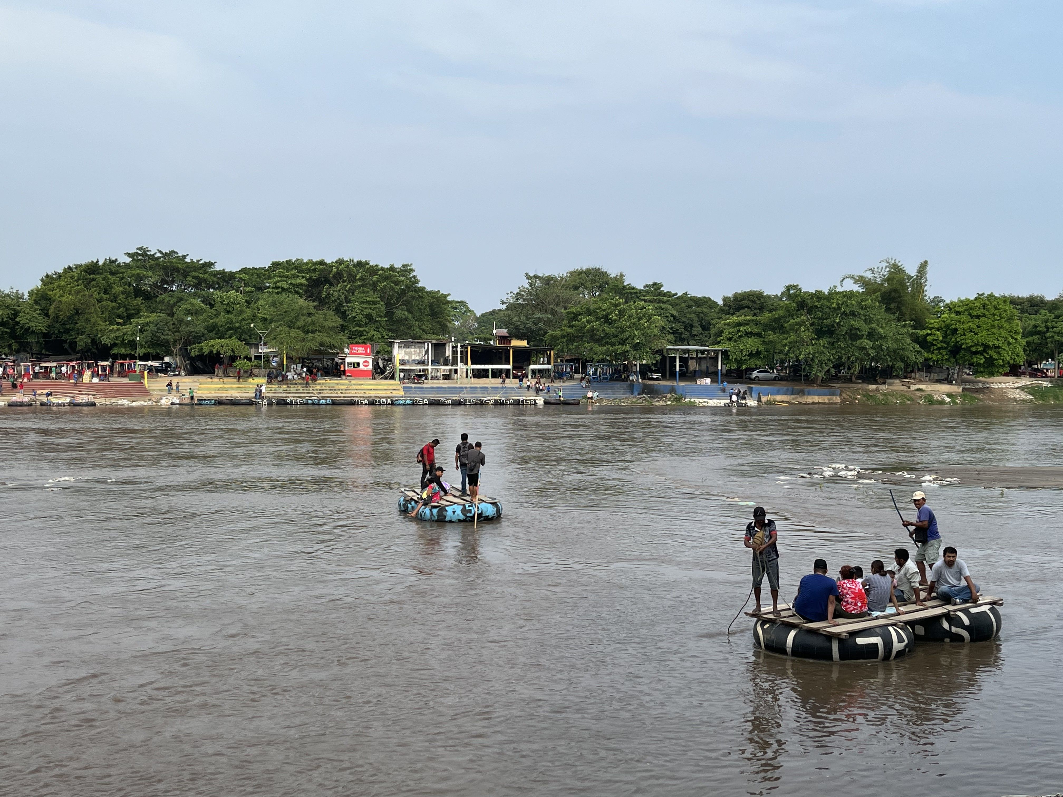 Members of the Mexican National Guard patrol the Suchiate River, where there is visible irregular movement of people and goods.