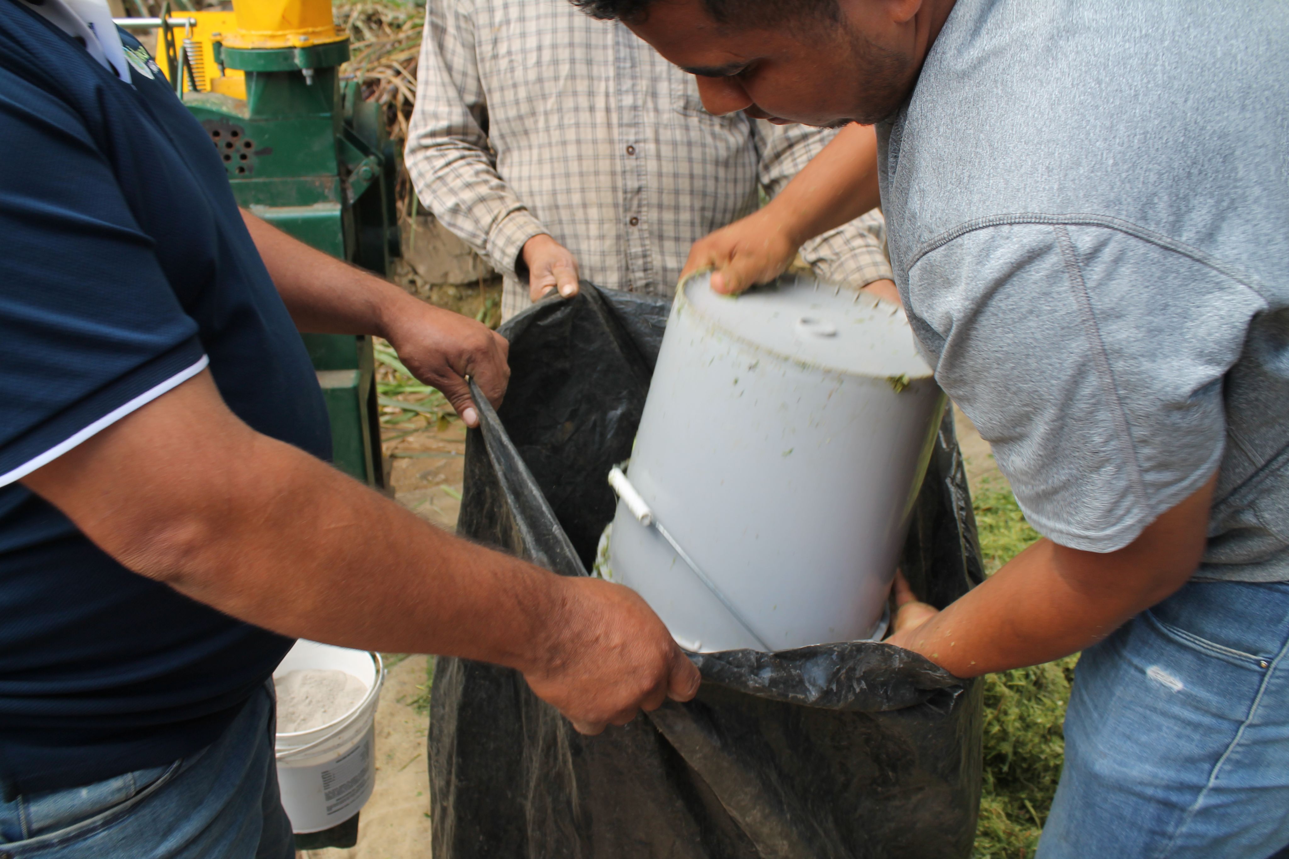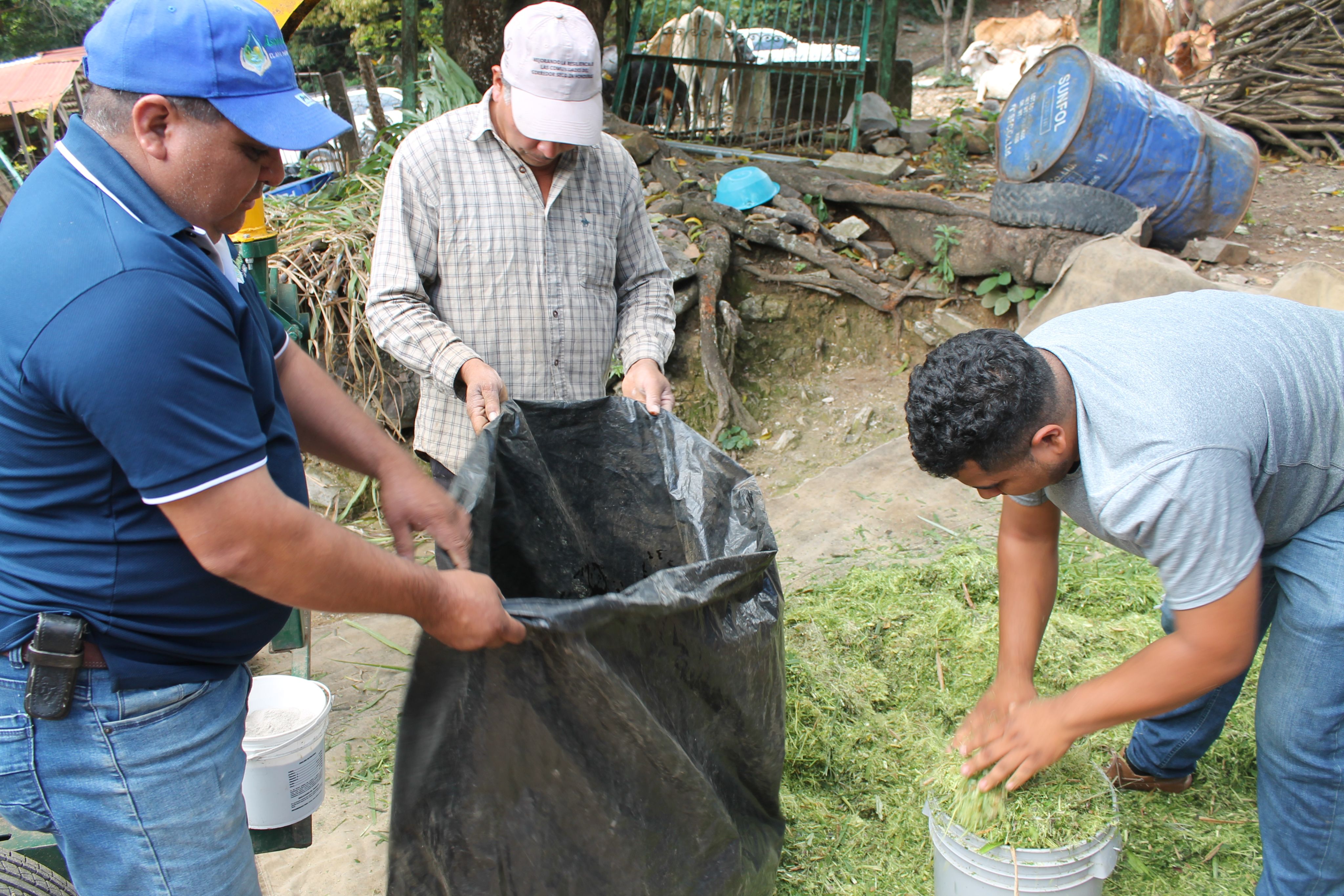 Natividad Maldonado and his neighbors have learned a new technique to preserve the grasses his cattle eat, allowing him to store 80 feed bags. They contain grass clippings mixed with molasses and a “flour” made of rock, which provides extra nutrients. Storing the feed ensures his cattle will have enough even if the next growing season fails. In addition to the technical know-how, their local farmer’s association received support to purchase a machine that can shred the grass in higher quantities so farmers can package the feed bags more efficiently.